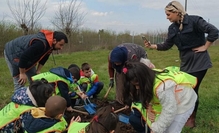 DÜZCE(İHA) – Düzce’de minik eller büyük ormanlar oluşturmak için çalıştı. Öğrenciler fidanın ağaca nasıl dönüştüğünü öğrendiler.