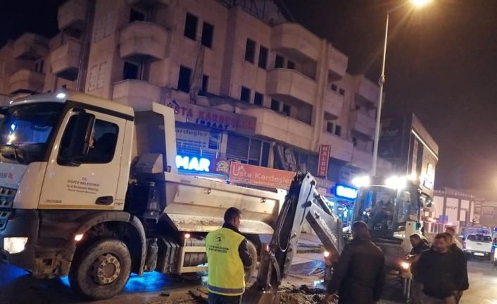 Düzce Belediyesi Su ve Kanalizasyon Müdürlüğü, Atatürk Bulvarında meydana gelen 500 metreküplük İçme Suyu Ana Hat arızasını vatandaşlar mağdur edilmemesi için gece de çalışarak giderdi.