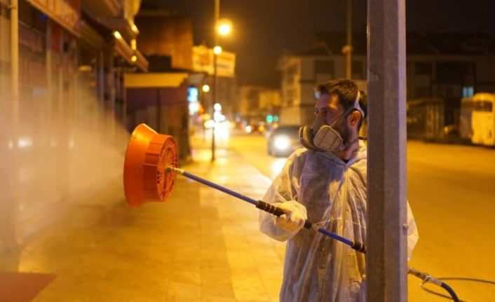 19) Pandemisi ile mücadele kapsamında şehrin dört bir yanında gece gündüz dezenfekte çalışmalarını sürdürüyor.