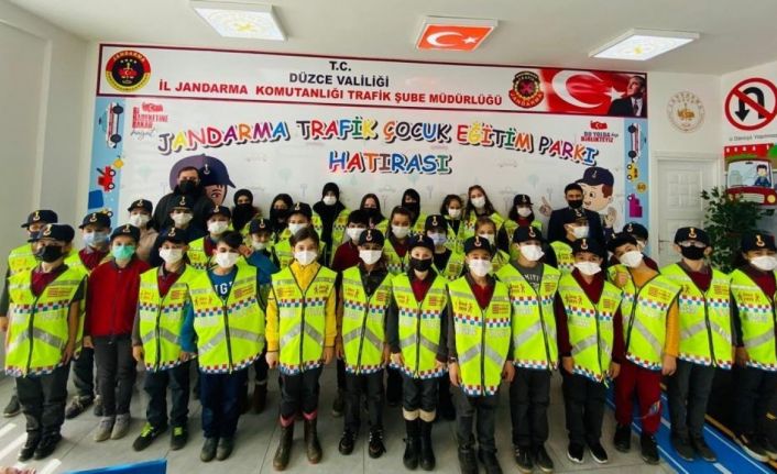 DÜZCE(İHA) –Düzce İl Jandarma Komutanlığına bağlı trafik timleri geleceğin sürücülerine küçük yaşta trafik eğitimi veriyor.