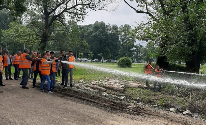 Orman yangınları gönüllüsü eğitiminin uygulamalı bölümüne katılan İşletme Müdürü Hülya Birtürk gönüllülere ormanların korunması konusunda gösterilen hassasiyet için teşekkür edip başarılar diledi.