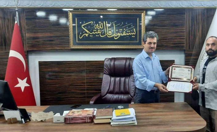 Hatip olarak görev yapan Sait Özdemir hafız oldu. Özdemir’e belgesini Müftü Osman Aydın verdi.
