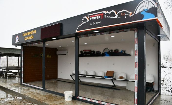 Belediyenin kendi öz kaynakları kullanılarak 25 iş günü içerisinde tamamlanan ve D-655 Karayolu Üniversite Kavşağına yerleştirilen modern durağın içerisinde 6 adet oturma koltuğu olmakla birlikte 20 kişi aynı anda bulunabilecek. İçine yerleştirilen klima ile yazın soğuk, kışın ise sıcak olmasının sağlanacağı durakta ayrıca akıllı telefon ve tabletler için şarj istasyonu, ücretsiz Wi-Fİ’nin yanı sıra organizasyon ve reklamlar için ekran ile dış kısmında ise gün-saat ve tarihin yazılı olduğu dijital bilgilendirme ekranı bulunacak.