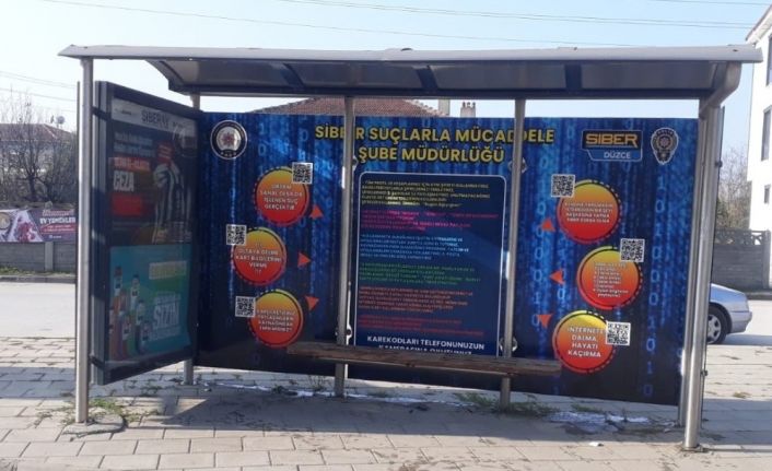 Düzce Emniyet Müdürlüğü Siber Suçlarla Mücadele Şube Müdürlüğü tarafından güvenli internet kullanımına ilişkin farkındalık programı gerçekleştiriliyor. İnternet ve teknoloji bağımlılığına dikkat çekilerek şehir merkezinde bulunan duraklara afişler asıldı.
