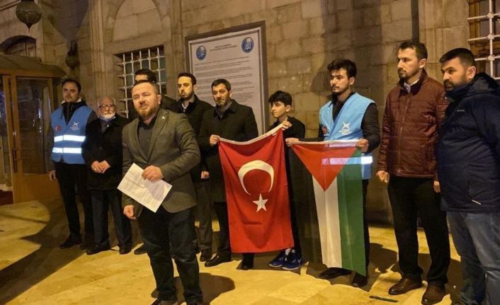 İsrail askerlerinin Mescid-i Aksa’da Filistinli çocuk ve gençlerin üzerine mermilerle saldırması üzerine TÜGVA Düzce Şubesi de teravih namazı sonrasında Cedidiye Camii önünde basın açıklaması yaptı.
