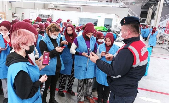 Düzce Merkez ilçe Bayraktar Jandarma Karakolu Komutanlığı sorumluluk alanında bulunan kereste ve tekstil firmasında çalışan 246 kadın işçiye KADES uygulaması hakkında bilgilendirme yapıldı. Eğitimin ardından ise kadınların cep telefonlarına KADES uygulaması yükletildi.