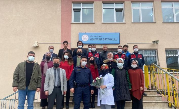 DÜZCE (İHA) – Düzce’de görev yapan jandarma ekipleri, 24 Kasım Öğretmenler Günü dolayısıyla köy okullarını ziyaret ederek, öğretmenlerin gününü kutladı.
