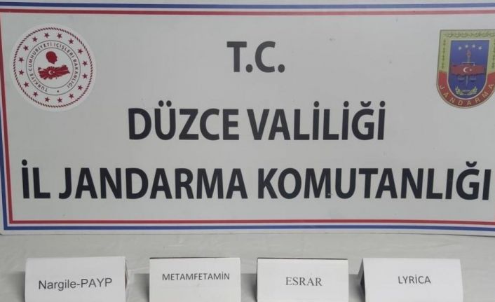 Düzce merkeze bağlı Mahmure köyü Melenpark mevkiinde yol kontrol uygulaması yapan Bayraktar Karakol Komutanlığı ekipleri, şüphelendikleri bir otomobili durdurdu. Jandarma ekipleri, otomobilde yolcu olarak bulunan H.A. isimli kadının üzerinde yaptığı aramada uyuşturucu kullanma aparatı, 7 gram esrar, 15 adet uyuşturucu hap ve yaklaşık 1 gram metamfetamin buldu. Gözaltına alınan H.A., İl Jandarma Komutanlığına götürüldü.