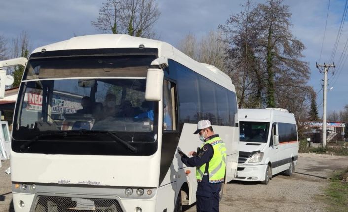 Düzce il Jandarma Komutanlığı Trafik Şube Müdürlüğü ekipleri, merkez ile ilçeler ve köyler arasında yolcu taşımacılığı yapan minibüsler üzerinde uygulama yaptı. D-655 Düzce-Akçakoca Karayolu ile Yığılca ilçe bağlantı yolu, Aydınpınar, Beyköy, Altınpınar ve Avlayan köy yollarında yolcu minibüsleri ve sürücüleri üzerinde uygulama yaptı. Yapılan denetimlerde 126 minibüs kontrol edildi. Kusurlu bulanan 35 minibüs şoförüne 27 bin 673 TL cezai işlem uygulandı. Ayrıca 12 minibüs trafikten men edildi. Sürücülerden 4 tanesinin ise ehliyetlerine el konuldu.
