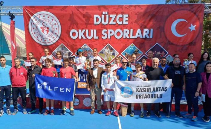 DÜZCE(İHA) – Okul Sporları Yıldızlar Tenis Türkiye şampiyonasında Düzce’yi temsil eden Muhammet Eren Çavuş ve Hüseyin Tuna Çavuş’dan oluşan Kasım Aktaş Ortaokulu Yıldızlar Erkek Kategorisinde Türkiye birincisi oldu.