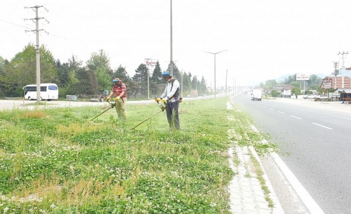100 Karayolu üzerinde ki refüj üzerinde bakım çalışmaları Kaynaşlı Belediyesi ekiplerince yapılıyor.