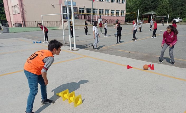 DÜZCE (İHA) – Milli Eğitim Bakanlığı tarafından başlatılan Temel eğitimde 10 bin okul projesi çerçevesinde Çilimli’de bulunan köy okuluna gönderilen spor malzemeleri ile öğrenciler çeşitli spor etkinliklerini gerçekleştirmeye başladı.