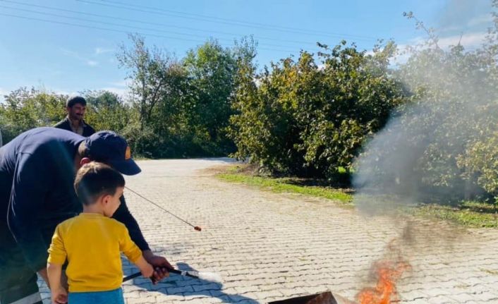 DÜZCE(İHA) – Çilimli Anaokulu öğrencileri, İtfaiye Haftasını kutladı okul bahçesinde yangın söndürdü.