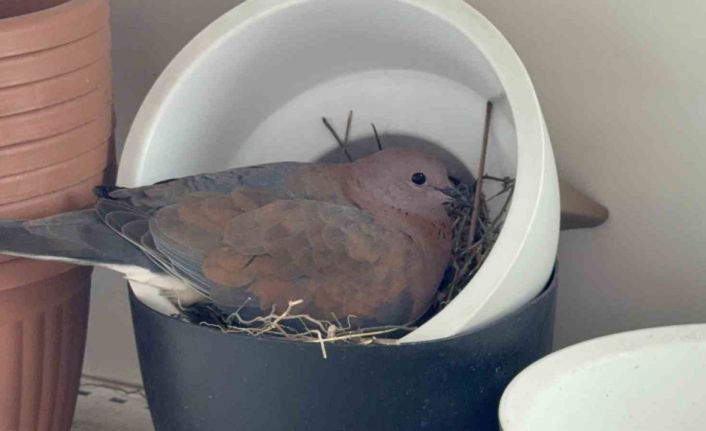 Olay, Bahçeşehir Bağlantı Yolu üzerindeki bahçe ürünleri satışı yapılan bir işletmede yaşandı. Dükkanın dış kısmında sergilenen bir saksının içine kumru yuva yaptı. İşletmeden saksı almak isteyen vatandaşların fark ettiği yuva üzerine işletme, saksı satışını geçici olarak durdurdu.