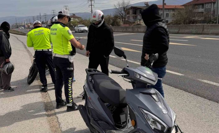Bölge Trafik Denetleme Şube Müdürlüğü ekipleri, kara yollarında motosiklet sürücüleri üzerinde yaptıkları denetimlerde hız yapan ve makas atan sürücüleri affetmedi.