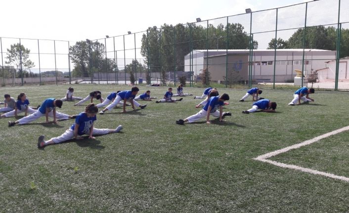 DÜZCE(İHA) – Düzce’de açık havayı fırsat bilen taekwandocular sentetik cim sahada hocaları eşliğinde antrenman yaptılar.