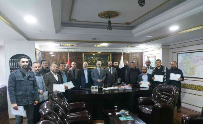 DÜZCE (İHA) – Diyanet işleri başkanlığı tarafından din görevlilerine yönelik verilen Hizmet içi eğitim kursunu başarı ile tamamlayan kursiyerlerin belgeleri İl Müftüsü Rüstem Can tarafından verildi.