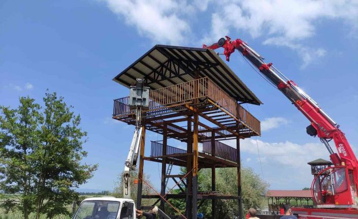 DÜZCE (İHA) – Düzce Doğa Koruma ve Milli Parklar Şube Müdürlüğü ekiplerince Efteni Gölü’nde bulunan kuşların gözlenmesi için yapılan kule inşaatında sona geldi.