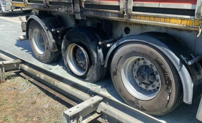 Düzce’de seyir halindeki tırın lastiğinin patlaması sebebiyle çıkan yangında dorsede hasar oluştu.