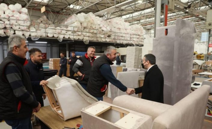 Vali Atay ve beraberindeki heyetin ilk durağı mobilya fabrikası oldu. Kursiyerlerden çalışmaları hakkında bilgiler alan Cevdet Atay, geçtiğimiz aylarda çıkan yangın sonrasında yapılan çalışmaları da yerinde inceledi.