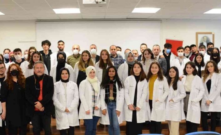 Gerçekleştirilen açılış konuşmalarından sonra Kimya Bölümü öğrencileri, mesleki hayatta ve laboratuvar çalışmalarında kullanacağı önlüklerini, bölüm hocalarının elinden giyme gururunu yaşadı.