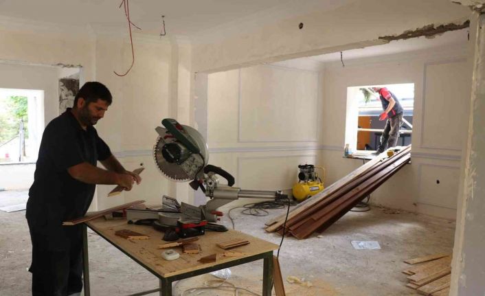 Düzce Belediyesinin şehir merkezinde kafe-kütüphane projesi için artık gün sayılıyor. Eski kaymakamlık lojmanında başlatılan tadilat çalışmalarına ara verilmeden devam edilirken son olarak binanın çatısı ve lambrileri belediye ekipleri tarafından tamamlandı. Binanın tesisatları yenilenirken dış cephesi ile işlemler son bulduktan sonra Millet Kütüphanesinin yeni pencere ve kapıları takılacak.