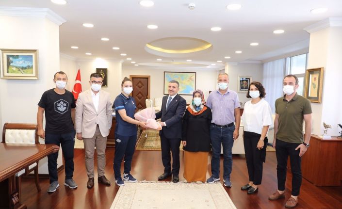 Düzce’nin olimpiyatlara gönderdiği ilk sporcu olan milli halterci Nuray Levent Vali Cevdet Atay’ı makamında ziyaret etti.