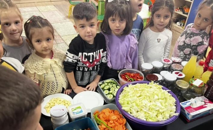 DÜZCE(İHA) –Düzce Uzun Mustafa İlkokulu Çalışkan Arılar Anasınıfı öğrencileri minik elleri ile turşu yaptılar.