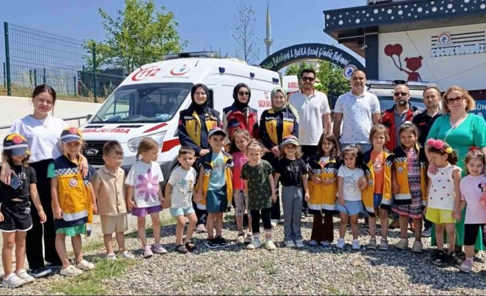 Minik öğrenciler eğitim sonunda ambulans siren sesi çalarak, anonslar yaptılar.