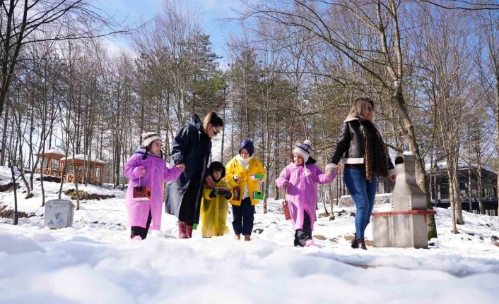 Düzce Belediyesi Çocuk Üniversitesi Anaokulu öğrencileri 14 Şubat Sevgililer Günü’nde ‘Doğa Sevgisi’ temasıyla örnek bir projeye imza attı. Doğa Bilimleri Atölyesi derslerinde öğrendikleri doğal yaşamın sürekliliğini desteklemek ve korumak konularında uygulama yapan öğrenciler öğretmenleri ile birlikte Korugöl Tabiat Parkı’nı ziyaret etti. Kış mevsiminde doğal hayatta yaşamlarını sürdüren hayvanlar için barınma alanı ve yiyecek hazırlığı yapan minikler, atık malzemelerden tasarladıkları Böcek Oteli isimli küçük barınma noktaları ile doğada diğer hayvanlar için mamalar hazırlayarak farklı noktalara bıraktı. Ayrıca yine atık malzemelerden kuş yuvaları da yapan öğrenciler içine yem koyarak yuvaları uygun ağaç dallarına yerleştirdi. Öğretmenleri ile hem doğal yaşam üzerine sohbet eden hem de doğada yaşayan hayvanların korunmasına destek olmak için neler yapılacağı konusunu uygulamalı olarak tecrübe eden öğrencilerin mutluluğu da gözlerinden okundu.
