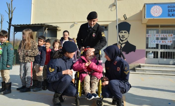 Düzce Jandarma Alay Komutanlığı ekipleri, ilkokul öğrencilerini sömestri tatili öncesi yalnız bırakmadı. Düzce Merkez Şehit jandarma Teğmen Uğur Altan İlkokulu’nda öğrenciler karnelerini Jandarma ekiplerinin elinden alındı. Asker abi ve ablalarında karne hediyesi alan öğrenciler çifte mutluluk yaşadılar.