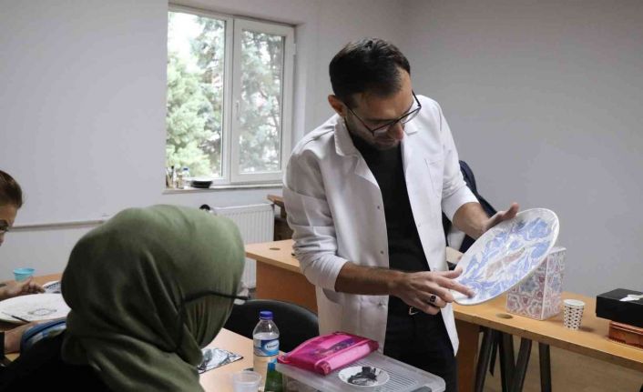 Geleneksel Türk Sanatları bölümü öğrencisi Özlem Yıldırım da çini sanatıyla ilgilendiğini ve severek yaptığını belirterek, “Eğitimim Geleneksel Türk Sanatı üzerine olduğu için Çini kursunun yararını görüyorum. Bir form üzerinde çalışıyorum ve bunun için de desen seçiyorum” diye konuştu.
