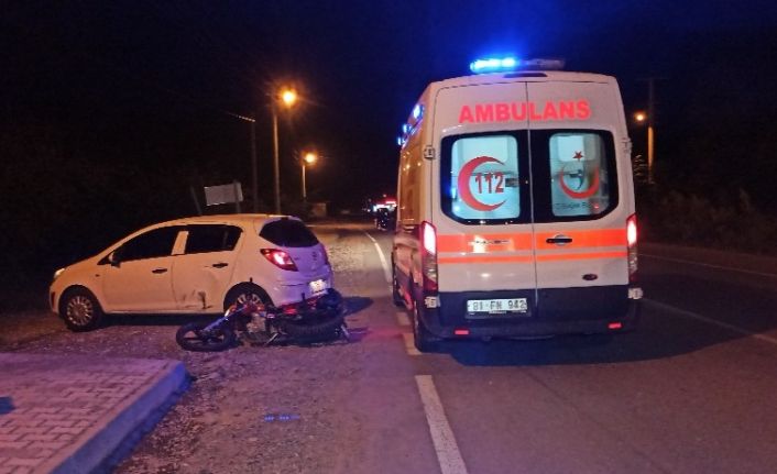 Düzce’de meydana gelen kazada Beyköy Beldesi bağlantı yolunda evine gitmek için sola dönüş yapan otomobile motosiklet çarptı. Kazada motosiklet sürücüsü yaralandı.