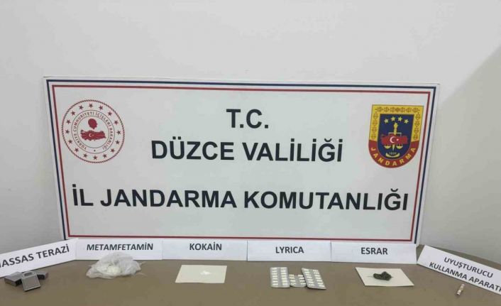 Çilimli ilçesi Kiraztarla köyünde hırsızlık olayı ilgili olarak jandarma unsurları çalışma yapıldı. Yapılan çalışmalar neticesinde olayın hırsızlık şüphelisi olarak tespit edilen H.K. ve T.C. isimli şahıslar yakalandı. Olayla ilgili Nöbetçi Cumhuriyet Savcısına bilgi verilerek H.K. isimli şahsın ikametinde gecikmesinde sakınca bulunan hal kapsamında arama yapıldı. Çilimli İlçe Jandarma Komutanlığı ekipleri, KOM Şube Müdürlüğü ekipleri, Narkotik Köpek Unsuru, JASAT Timi ve Bayraktar Jandarma Karakol Komutanlığı ekiplerince müşterek yapılan ev aramasında 36 adet lyrıca, 3 gram kubar esrar, 2 gram kokain, 15 gram metamfetamin ve hassas terazi ele geçirildi. Gözaltına alınan H.K. isimli şahıs çıkarıldığı mahkemece tutuklandı.