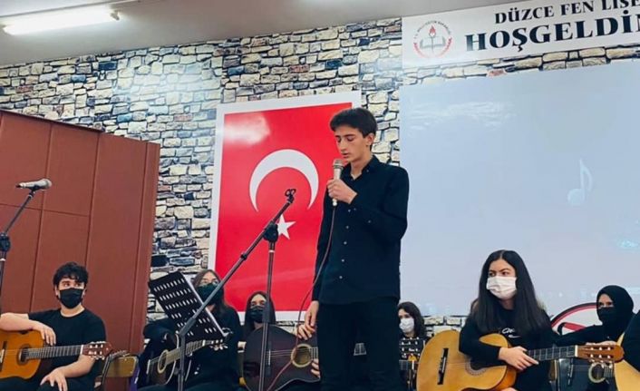 DÜZCE (İHA) – Düzce Fen Lisesi öğrencileri Cumhuriyet’in 98. Yıl dönümünü arkadaşlarına konser vererek kutladı.
