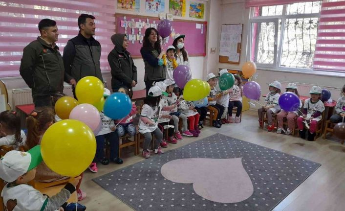 DÜZCE (İHA) – Düzce Orman İşletme Müdürlüğü yetkilileri, Şükran Öney Anaokulu öğrencilerine ormanların önemine ilişkin bilgilendirmelerde bulundu.