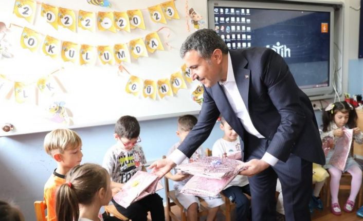 Atay, yeni eğitim öğretim yılının hayırlı olmasını diledi ve çocuklara hediye verdi.