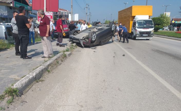 Kaza Düzce D-100 Karayolu Öztürkler Kavşağında meydana geldi. Edinilen bilgilere göre, Bolu istikametine seyir halinde olan 2 otomobil kavşakta çarpıştı. Çarpışmanın etkisi ile direksiyon hakimiyetini kaybeden otomobil sürücüsü, park halindeki minibüse çarpmasının ardından ters döndü. Kazayı görenlerin ihbarı üzerine bölgeye gelen sağlık ekipleri takla atan otomobil içerisindeki sürücüye olay yerinde ayakta tedavi etti. Kaza sebebi ile D-100 Karayolu Bolu istikametine kısa süreli tek şeritten sağlanırken, kazaya karışan araçların kaldırılmasının ardından trafik normal seyrine döndü. Polis kaza ile ilgili inceleme başlattı.Önce minibüse çarptı sonra ters döndü