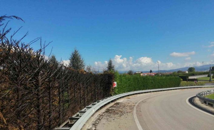 Düzce’nin önemli geçiş güzergahı olan D-100 karayolu üzerinde bulunan Kervan Kavşağındaki 50 süs ağacı kimliği belirsiz kişi veya kişilerce ateşe verildi. Düzce Belediyesi yangın ile ilgili rapor tutarak kolluk kuvvetlerine bilgi verdi.