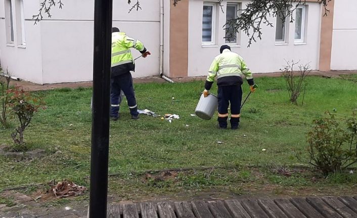 Düzce Belediyesi Temizlik İşleri Müdürlüğü’ne bağlı ekipler bir yandan salgın hastalıkla mücadele ederken bir yandan da periyodik olarak sürdürdüğü çöp toplama, mıntıka temizliği, konteynerlerin etrafına bırakılan çöp ve atıkların kaldırılması çalışmalarını gerçekleştiriyor.
