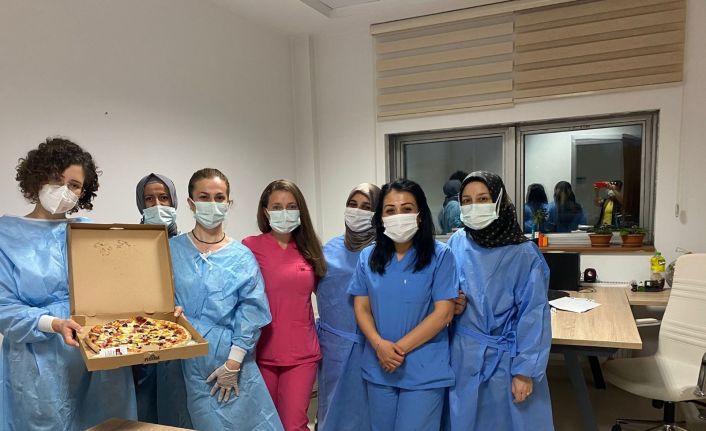 Düzce’de faaliyetlerine devam eden bir pizza firması, Korona virüs salgını sonrasında başlayan aşılama çalışmaları kapsamında tüm personelleri ile birlikte Düzce Toplum Sağlığı Merkezi’ne giderek aşılarını yaptırdı. Çalışanlar daha sonra işlerine giderken, pizza firmasının yöneticleri sağlıkçılara yönelik bir sürpriz hazırladı. Her çeşit pizza yapılarak sağlıkçılara verildi. Kutuların üzerine de “Pizza firması olarak bu zorlu süreçte yaptıklarınız için teşekkür ederiz. Afiyet olsun. Kolaylıklar dileriz” ifadelerinde bulunuldu.Pizzacılardan sağlıkçılara sürpriz