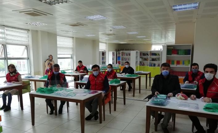 DÜZCE (İHA) – Düzce Gençlik Merkezi Gönüllüleri sağlık çalışanları için korumalı maske üretimine başladı.