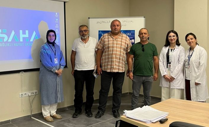 Akçakoca Sağlıklı Hayat Merkezi (SAHA) Sağlık Elçileri eğitimleri devam ediyor. Sağlık Bakanlığı tarafından toplum sağlığı konusunda farkındalık geliştirmek, sağlıklı yaşam kültürünü yaygınlaştırmak, sağlık okuryazarlığı düzeyini artırmak, gün içerisinde birçok kişiyle temas halinde olan ve iletişim kuran meslek gruplarına ulaşarak halkın farkındalık düzeyini arttırmak amacıyla eğitim programları gerçekleştirmekte. Çalışma kapsamında mahalle ve köylerde 2. eğitim grubunda yer alan muhtarların davet edildiği SAHA Elçileri eğiti verildi. Katılımcılara; "Koruyucu sağlık hizmetleri ve aile hekimliği, ağız ve diş sağlığı, sağlıklı beslenme ve fazla kilo ile mücadele, fiziksel aktivite ve doğru egzersiz, akılcı ilaç kullanımı, sağlıklı yaşam ve kronik hastalıklar, sağlıklı kadın ve sağlıklı nesil, ruh sağlığı, bağımlılıkla mücadele ve sağlıklı alışkanlıklar, sağlıklı yaş alma ve yaşlı sağlığı, acil durum yönetimi ve temel ilkyardım, toplum sağlığında iletişim becerileri eğitimi verildi.