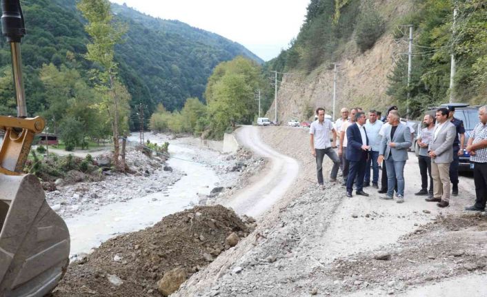 Düzce’de geçtiğimiz Haziran ayının sonlarında birçok bölgede meydana gelen sel afetinin yaraları sarılmaya devam ediliyor. En büyük hasarı alan Samandere ve Uğur köylerinde yol yapım çalışmaları devam ediyor. Köylerin ana yolunda yapılan çalışmaları Düzce Valisi Cevdet Atay ve beraberindeki heyet yerinde inceledi. İl Özel idaresi ekiplerinin hummalı bir şekilde gerçekleştirdiği çalışmaları inceleyen Vali Atay, genel sekreter Hayri Şen’den de yapılanlar hakkında bilgiler aldı.