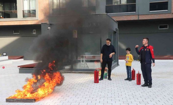 Düzce Belediyesi İtfaiyesi, kurum ve okulların yanı sıra site sakinlerine de yangınla mücadele eğitimi veriyor.
