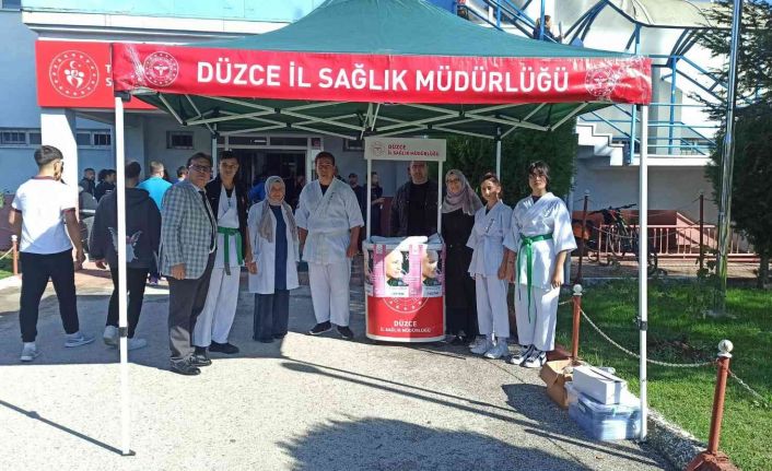 Düzce’de 18 Temmuz Spor Salonu önünde stant kuran İl Sağlık Müdürlüğü Halk Sağlığı Başkanlığı ekipleri, sporcuları kansere karşı uyardı.