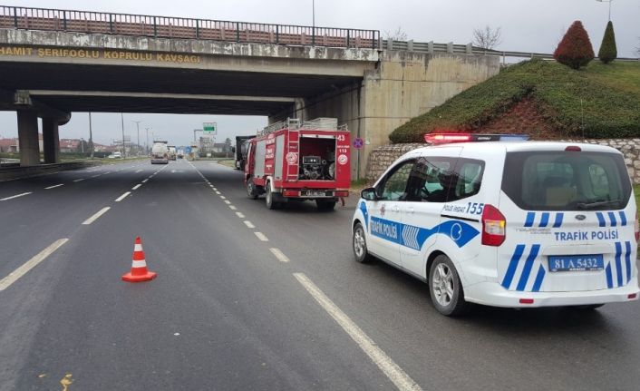 Olay öğlen saatlerinde D-100 karayolu Kervan Köprüsü mevkiinde meydana geldi. Birol S. helyum gazı taşınan ancak ‘Boş’ yazılı tankeri köprü altına park ederek ihtiyaç gidermeye gitti. Bu sırada tankerin arka kısmından gaz sızmaya başladı. Yoldan geçen sürücülerin fark etmesi ile tankerin bulunduğu mevkiye polis ve itfaiye ekibi sevk edildi. Bir süre sonra gaz kendiliğinden kesildi ve yapılan incelemede gazın tankeri kendi kendini soğutmak için kullandığı ozon gazı olduğu anlaşıldı.