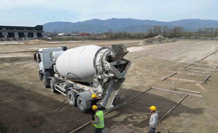 Düzce Belediyesi’nin birinci etabını tamamladığı modern sanayi sitesi projesinde, ikinci ve üçüncü etaplardaki inşaat çalışmaları hızla sürüyor. 164 dükkanın yer alacağı projede temel beton döküm işlemleri devam ediyor.