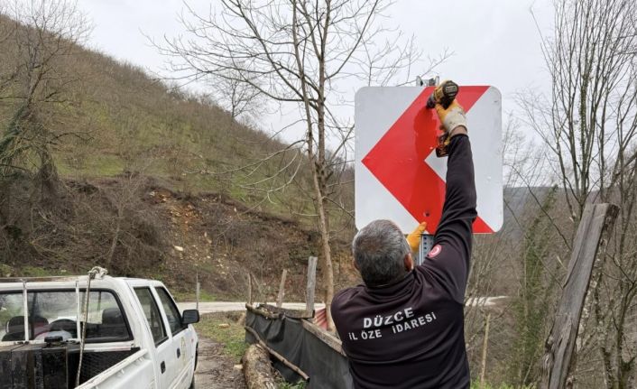 DÜZCE (İHA) – Çilimli ve Akçakoca ilçelerinde trafik güvenliğini artırmak amacıyla, grup yolu üzerinde levha yerleştirme çalışmaları sürüyor. Yetkililer, sürücülerden yeni levhalara dikkat etmelerini ve güvenli sürüş sağlamalarını istedi.