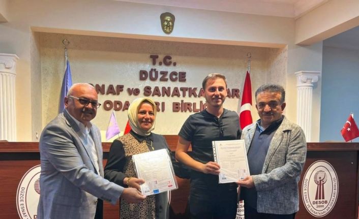 Düzce’de pimapen ustaları ve emlakçılar için açılan mesleki Yeterlilik Kursunu başarı ile bitiren ustalar DESOB’ta düzenlenen törenle belgelerini aldı.